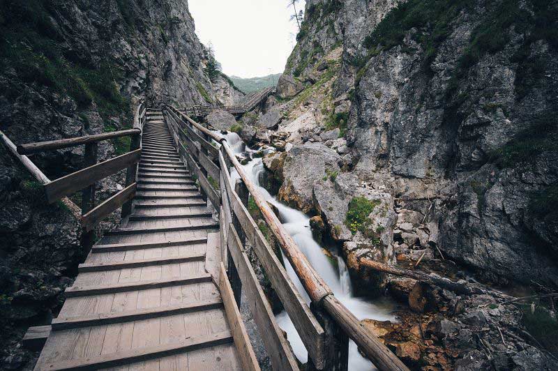 Com uma altura de 380 metros, as Cataratas de Krimml são as mais altas da Áustria, e estão no Parque Nacional Hohe Tauern, perto da aldeia de Krimml. A Montanha Zugspitze, de quase três mil metros de altura, marca a fronteira entre a Alemanha e a Áustria. Há um trem e um teleférico que transportam os visitantes até o topo. A Caverna Eisriesenwelt tem 42 km de comprimento, o que a torna a maior caverna de gelo do mundo, e é uma atração natural visitada por milhares de pessoas. A Estrada Alpina Grossglockner, é a estrada mais popular da Áustria. Cruza diferentes áreas climáticas, paisagens, florestas, prados e o glacial da montanha mais alta do país, a Grossglockner, de 3.798 m de altitude.